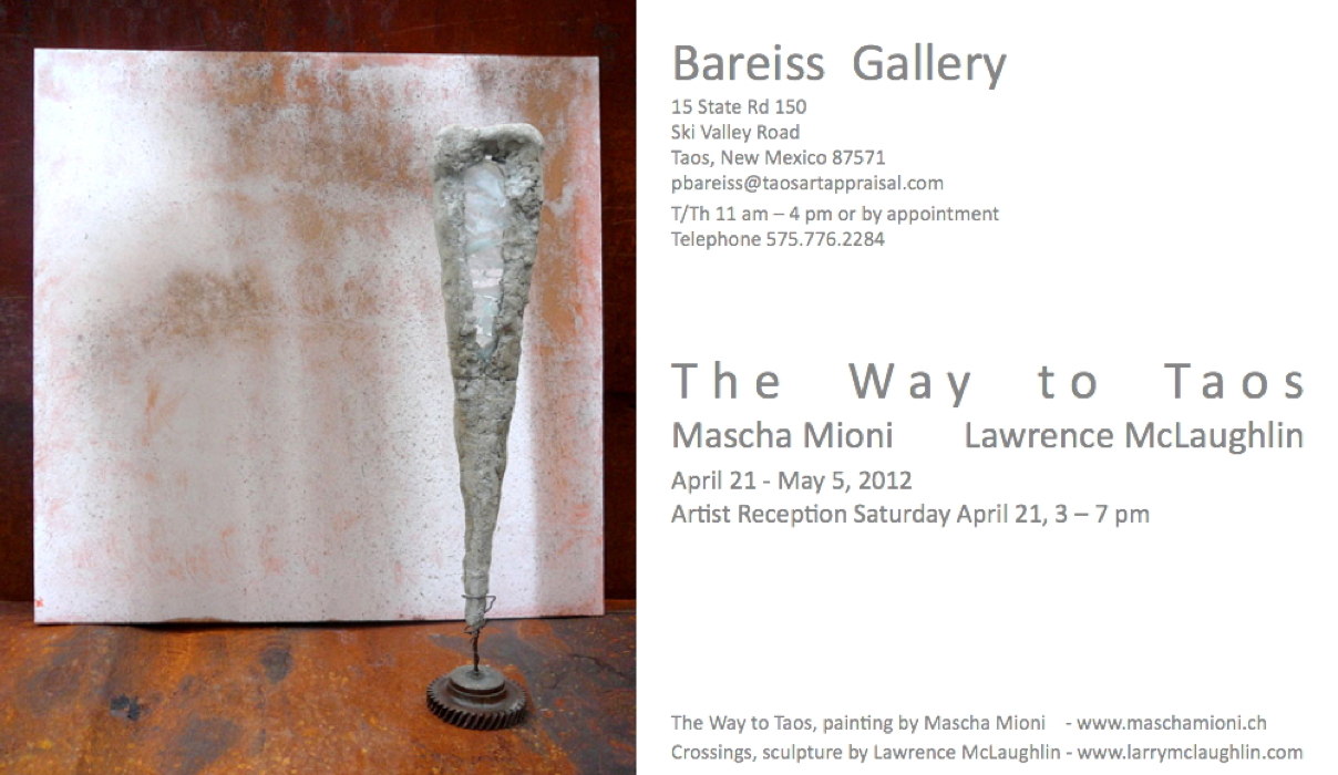 Mascha Mioni and sculptor Lawrence McLaughlin will be showing their works at the Bareiss Gallery in Taos/New Mexico, USA. The opening reception is scheduled for 3 p.m., April 21st, 2012.