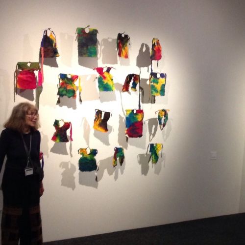 Die Filz-Spezialistin und Textilkünstlerin Jorie Johnson hat ihre Kollegin Ana Lisa Hedstrom vor dem Werk von Mascha photographiert.